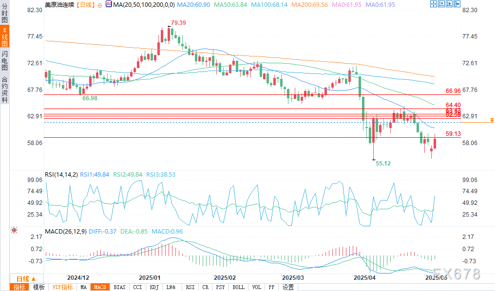 (WTI原油日图 来源:易汇通)   中国工业产出和零售销售弱于预期,引发了需求方面的悲观情绪。然而,在美国和中国暂停90天关税以及贸易流动有改善迹象之后,一些交易员仍持谨慎乐观态度。高盛强调中国经济活动后期有所上升,这可能会抵消一些需求方面的担忧。   原油市场展望:在缺乏新催化剂的情况下偏空   在伊朗问题没有明确解决方案或俄罗斯出口立场没有实质性转变的情况下,原油仍处于技术上的不确定状态。需求疲弱的信号以及对美伊谈判进展缺乏信心都倾向于利空。   上破63.10美元可能会改变走势,但在此之前,原油价格可能仍将维持在区间内,且下行风险占主导。   北京时间20:02,WTI原油报61.86美元每桶,跌幅0.45%。